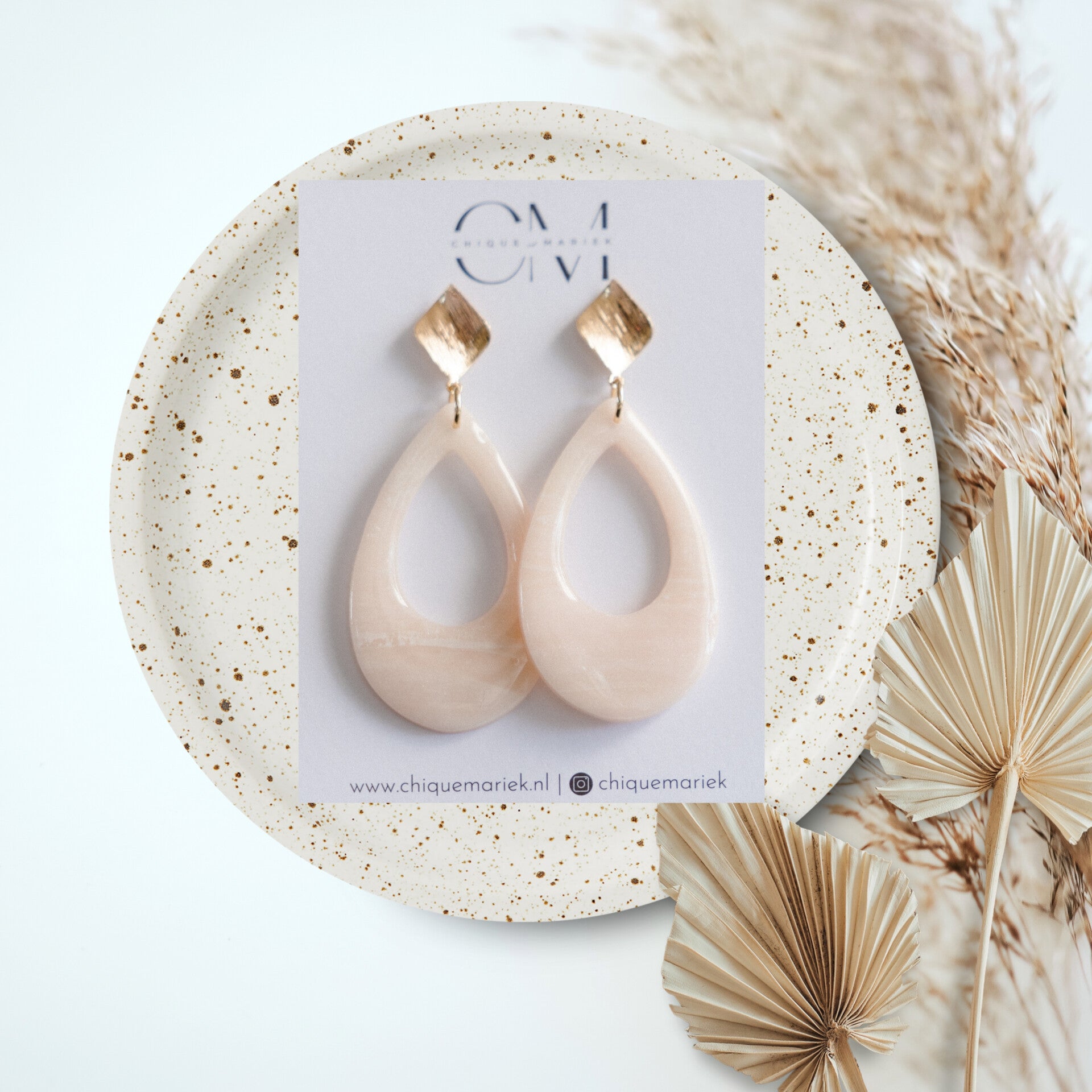Prachtige oorbellen in mooie heel lichtroze tinten. Afgewerkt met een mooie glanslaag.