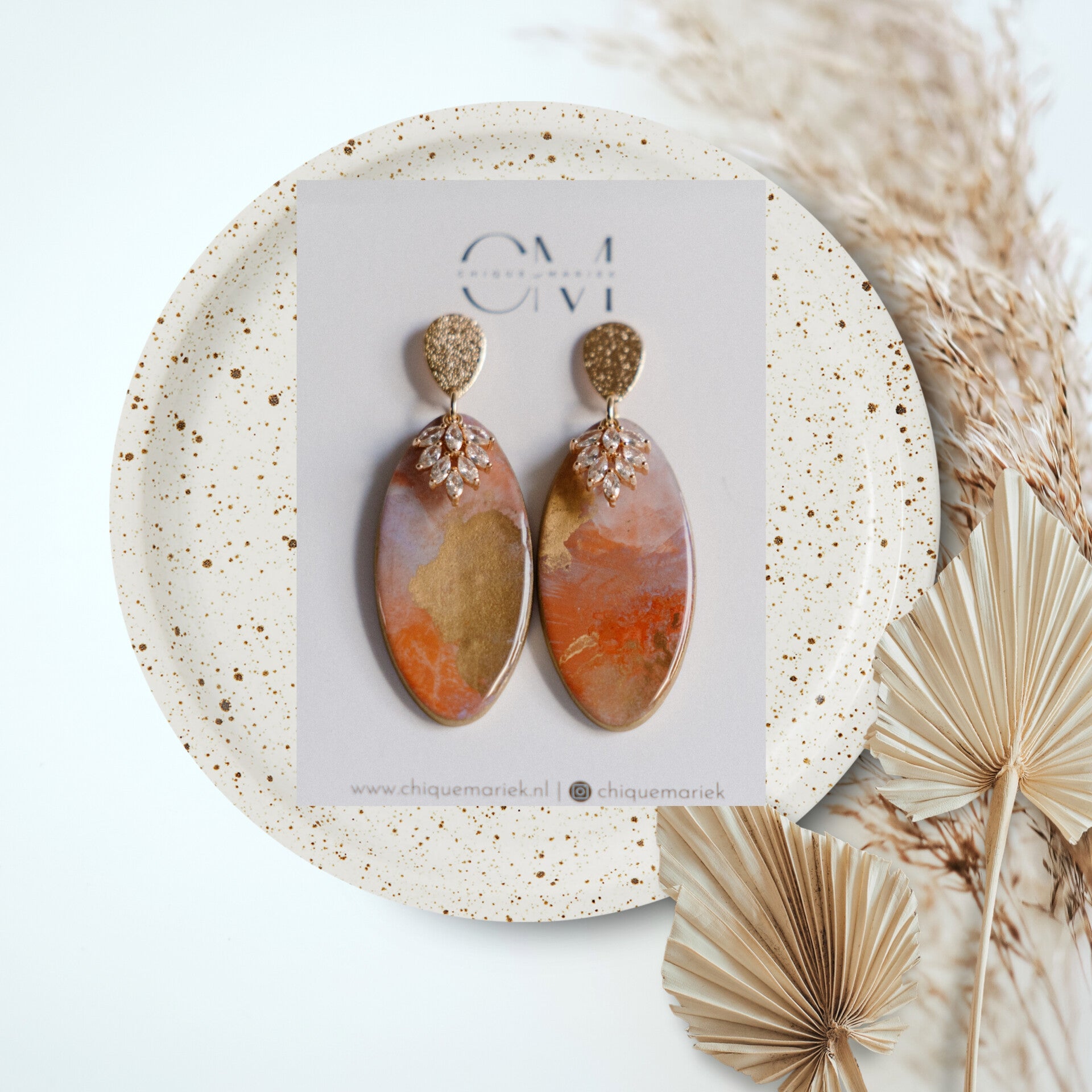 Prachtige oorbellen in mooie zomerse tinten. Deze oorbellen hebben een toffe art look met een mooi zirkonia hangertje. Afgewerkt met een mooie glanslaag.