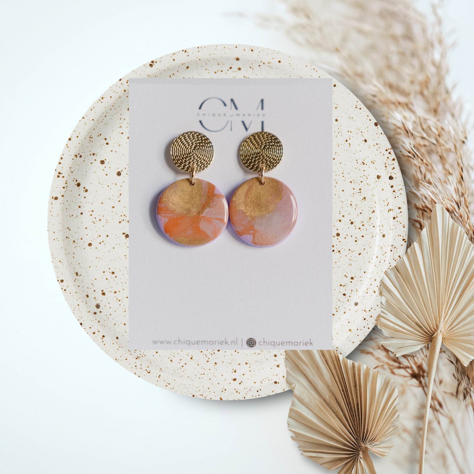 Prachtige oorbellen in mooie zomerse tinten. Deze oorbellen hebben een toffe art look en zijn afgewerkt met een mooie glanslaag.