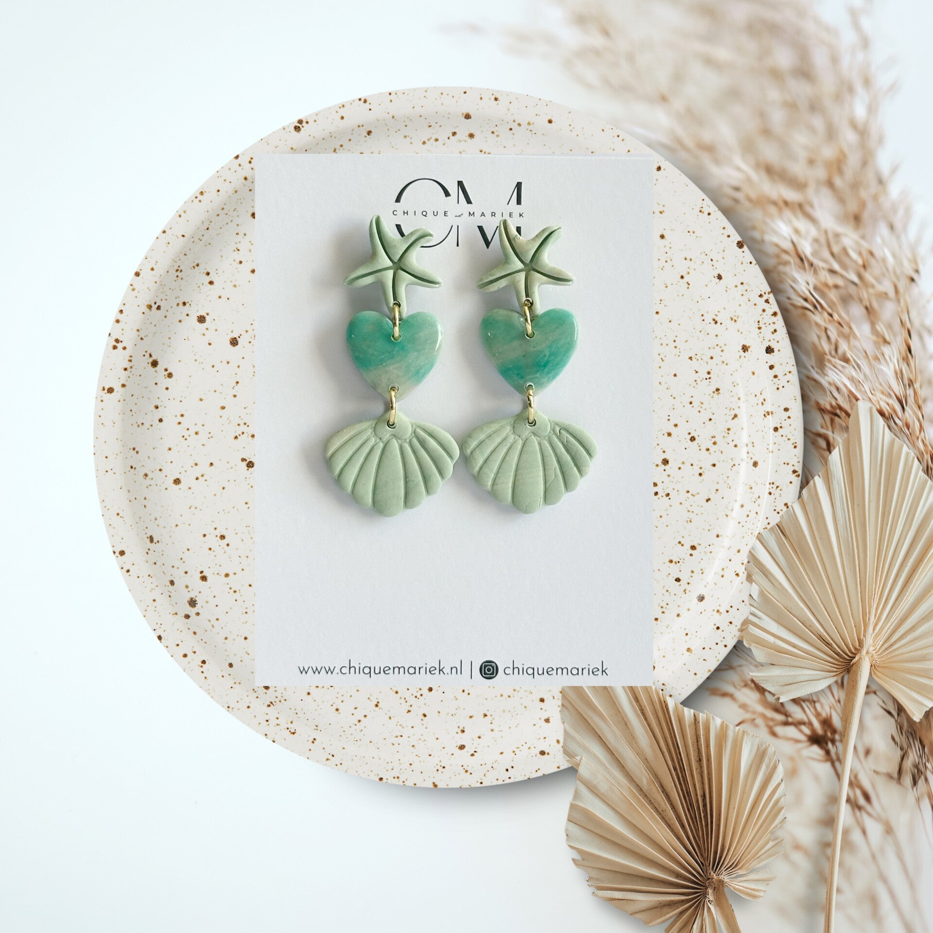 Prachtige oorbellen in leuke zomerse tinten. Het hartje is afgewerkt met een mooie glanslaag.